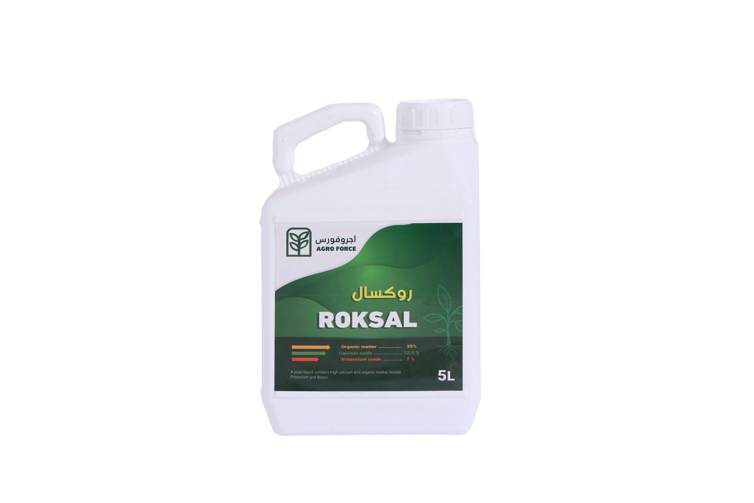 Roksal is a high-purity, high-density liquid fertilizer formulated from calcium nitrate, potassium nitrate, and boron. It is a stable concentrate containing calcium in the form of a calcium complex with carboxylic and organic acids, enhancing the efficiency of calcium in treating soil salinity.